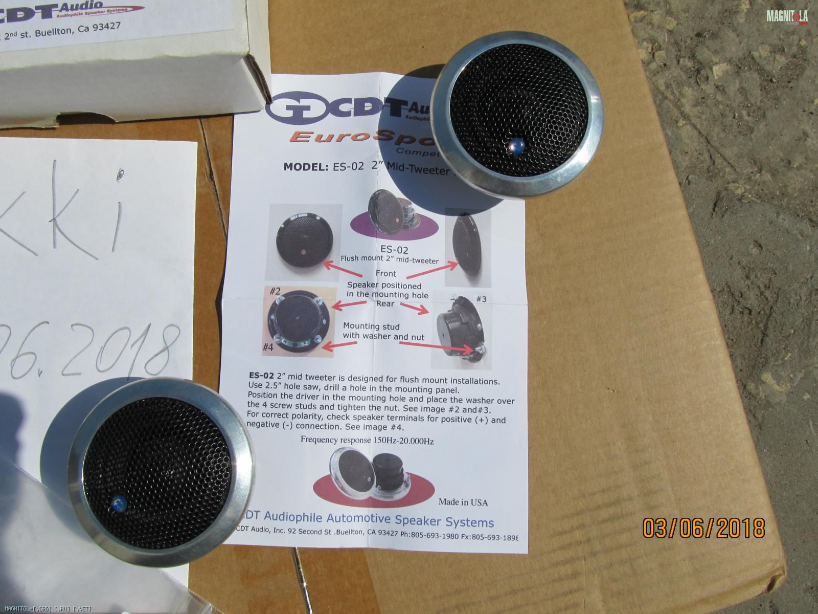 | Торгово-информационная система Магнитола::Автозвук. Мидтвитер CDT Audio ES-02al - описание и характеристики. |