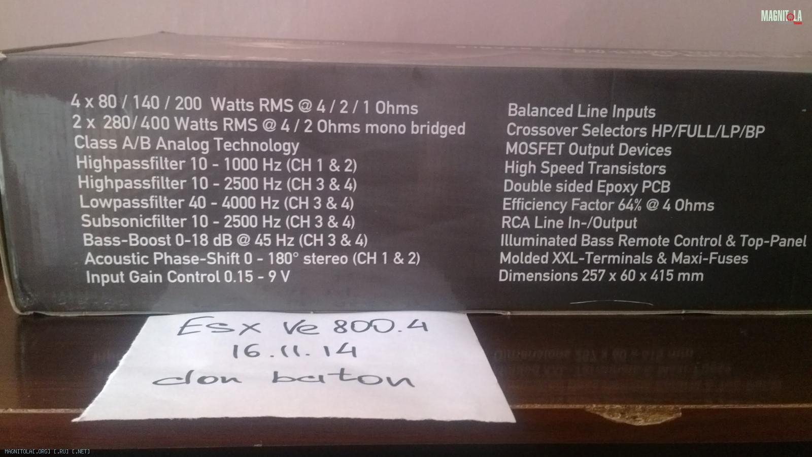 Технические характеристики ESX VE800.4: |